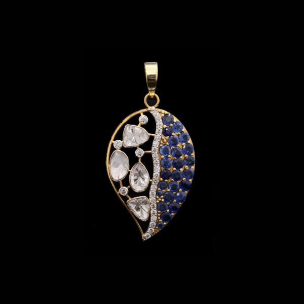 14kt Blue Sapphire Pendant Set with Polki Diamond