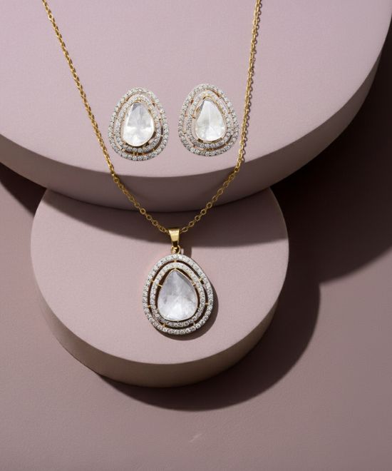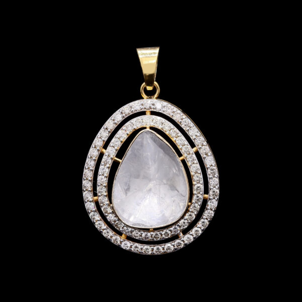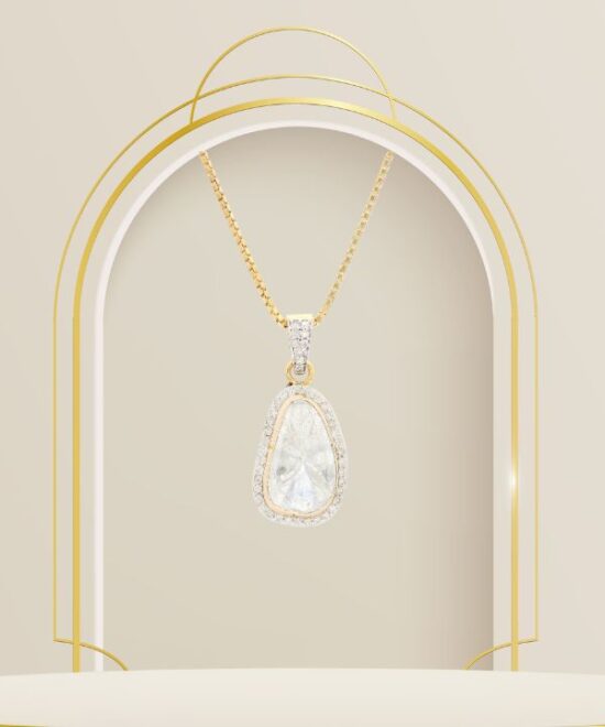 Adorn yourself with the 14kt Diamond Polki Pendant Set from Laxmi Hans Impex. Designed with our open-setting technique, it showcases radiant diamonds and Polki in pure gold—merging timeless artistry, authentic craftsmanship, and contemporary elegance for meaningful moments and everyday luxury.