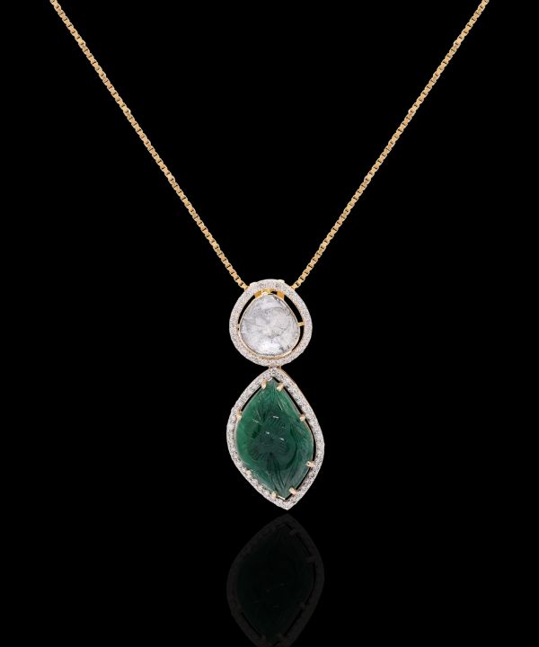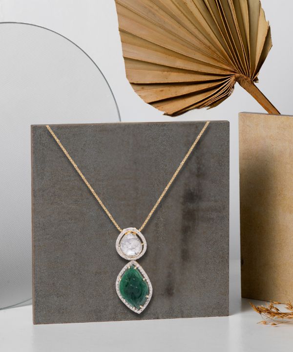 Gracefully handcrafted in 14k gold, this pendant showcases an elegant floral motif with uncut Polki diamonds for unmatched sparkle. Perfect for special occasions or everyday luxury, it’s designed to elevate your style effortlessly. A bestseller in festive jewellery and an ideal pick for Diwali or wedding gifting.