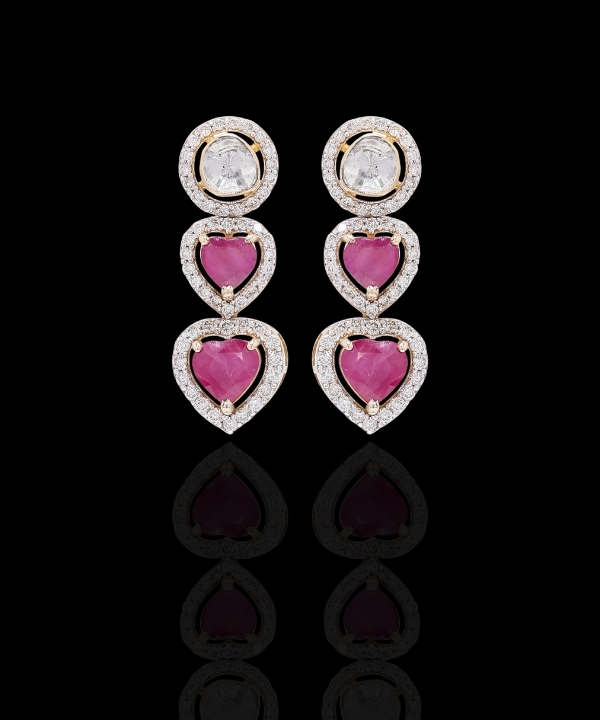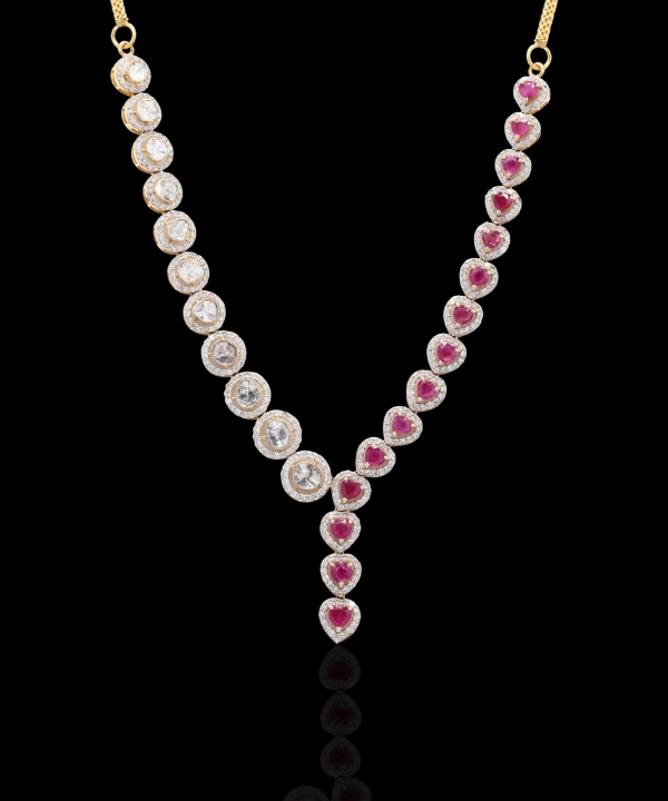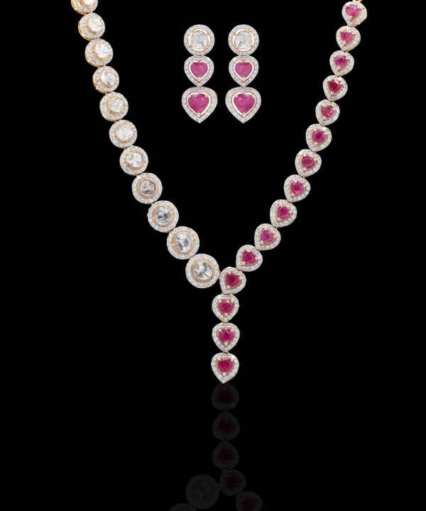 Heart Shape Rubies with Polki Diamond Necklace Set