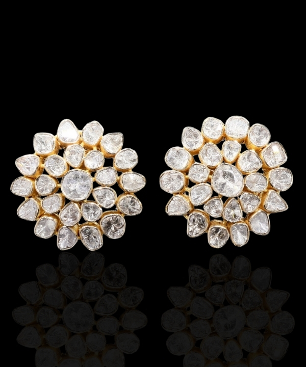 Diamond Polki Color Stones In Open Setting In 14k Gold.