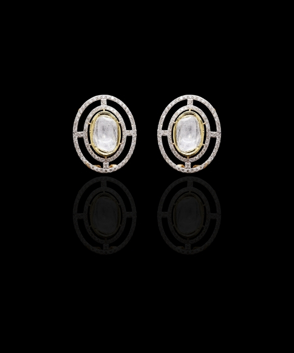 Diamond Polki Color Stones In Open Setting In 14k Gold.